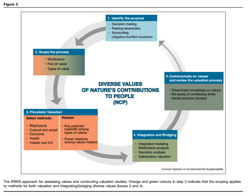 “Nature is perceived and valued in starkly different and often conflicting ways. This paper presents the rationale for the inclusive valuation of nature’s contributions to people (NCP) in decision making, as well as broad methodological steps for doing so. While developed within the context of the Intergovernmental Platform on Biodiversity and Ecosystem Services (IPBES), this approach is more widely applicable to initiatives at the knowledge–policy interface, which require a pluralistic approach to recognizing the diversity of values. We argue that transformative practices aiming at sustainable futures would benefit from embracing such diversity, which require recognizing and addressing power relationships across stakeholder groups that hold different values on human nature-relations and NCP.”