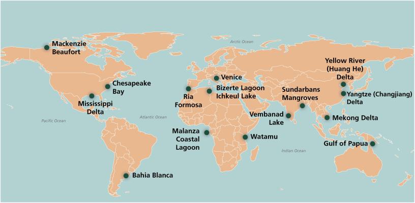 Coastal wetlands, such as saltmarshes and mangroves that fringe transitional waters, deliver important ecosystem services that support human development. Coastal wetlands are complex social-ecological systems that occur at all latitudes, from polar regions to the tropics. This overview covers wetlands in five continents. The wetlands are of varying size, catchment size, human population and stages of economic development. Economic sectors and activities in and around the coastal wetlands and their catchments exert multiple, direct pressures. These pressures affect the state of the wetland environment, ecology and valuable ecosystem services. All the coastal wetlands were found to be affected in some ways, irrespective of the conservation status. The main economic sectors were agriculture, animal rearing including aquaculture, fisheries, tourism, urbanization, shipping, industrial development and mining. Specific human activities include land reclamation, damming, draining and water extraction, construction of ponds for aquaculture and salt extraction, construction of ports and marinas, dredging, discharge of effluents from urban and industrial areas and logging, in the case of mangroves, subsistence hunting and oil and gas extraction. The main pressures were loss of wetland habitat, changes in connectivity affecting hydrology and sedimentology, as well as contamination and pollution. These pressures lead to changes in environmental state, such as erosion, subsidence and hypoxia that threaten the sustainability of the wetlands. There are also changes in the state of the ecology, such as loss of saltmarsh plants and seagrasses, and mangrove trees, in tropical wetlands. Changes in the structure and function of the wetland ecosystems affect ecosystem services that are often underestimated. The loss of ecosystem services impacts human welfare as well as the regulation of climate change by coastal wetlands. These cumulative impacts and multi-stressors are further aggravated by indirect pressures, such as sea-level rise.